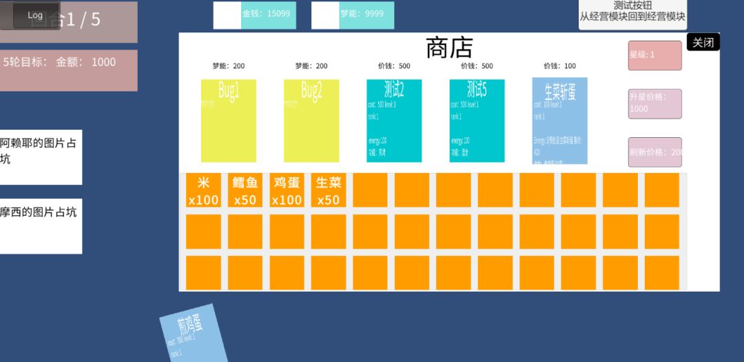 在游戏策划案完成后,程序同学马上进入到紧张的开发中。为了进行基础体验和数值方面的测试,我们的程序同学将功能逐步实现并搭建起了极简风的基础白盒用于测试。尽管没有美术的运行在美观上有些粗糙,但对于测bug和基础体验来说已经够了。于是在出完第一版测试包之后,大家纷纷开始跑体验,并进行了一系列的bug记录和体验反馈。