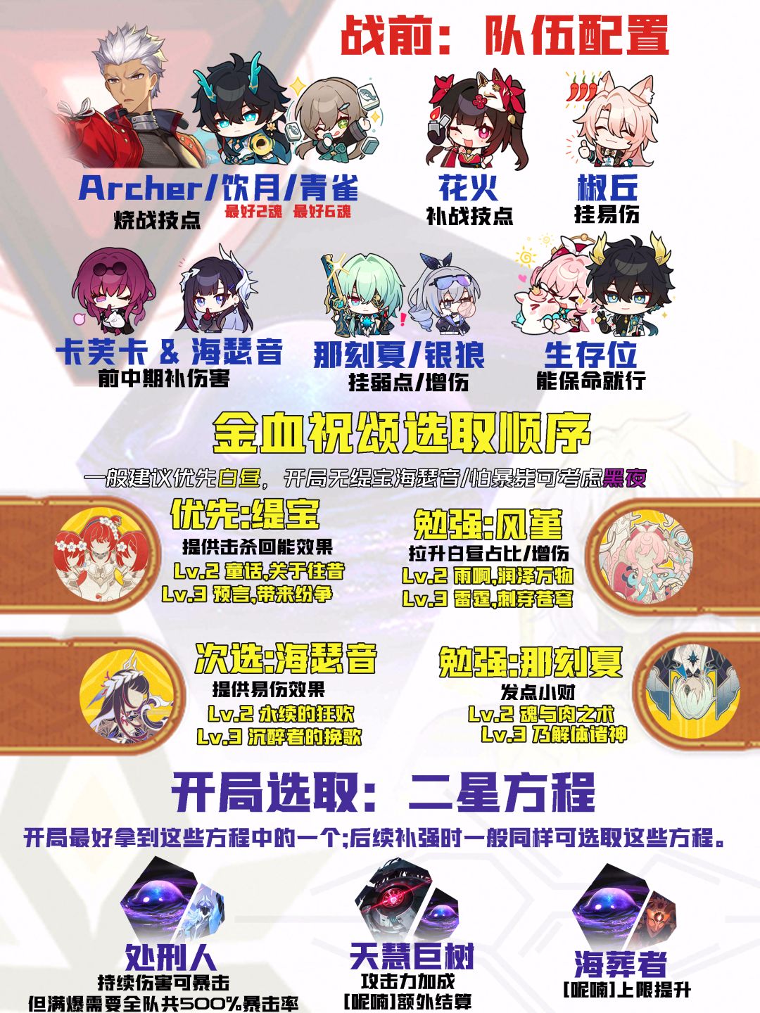 *由于卡海队在差分宇宙中具有碾压级的强度,纯火dot/反击dot的输出已经显著跟不上时代,此处不再进行介绍和推荐。