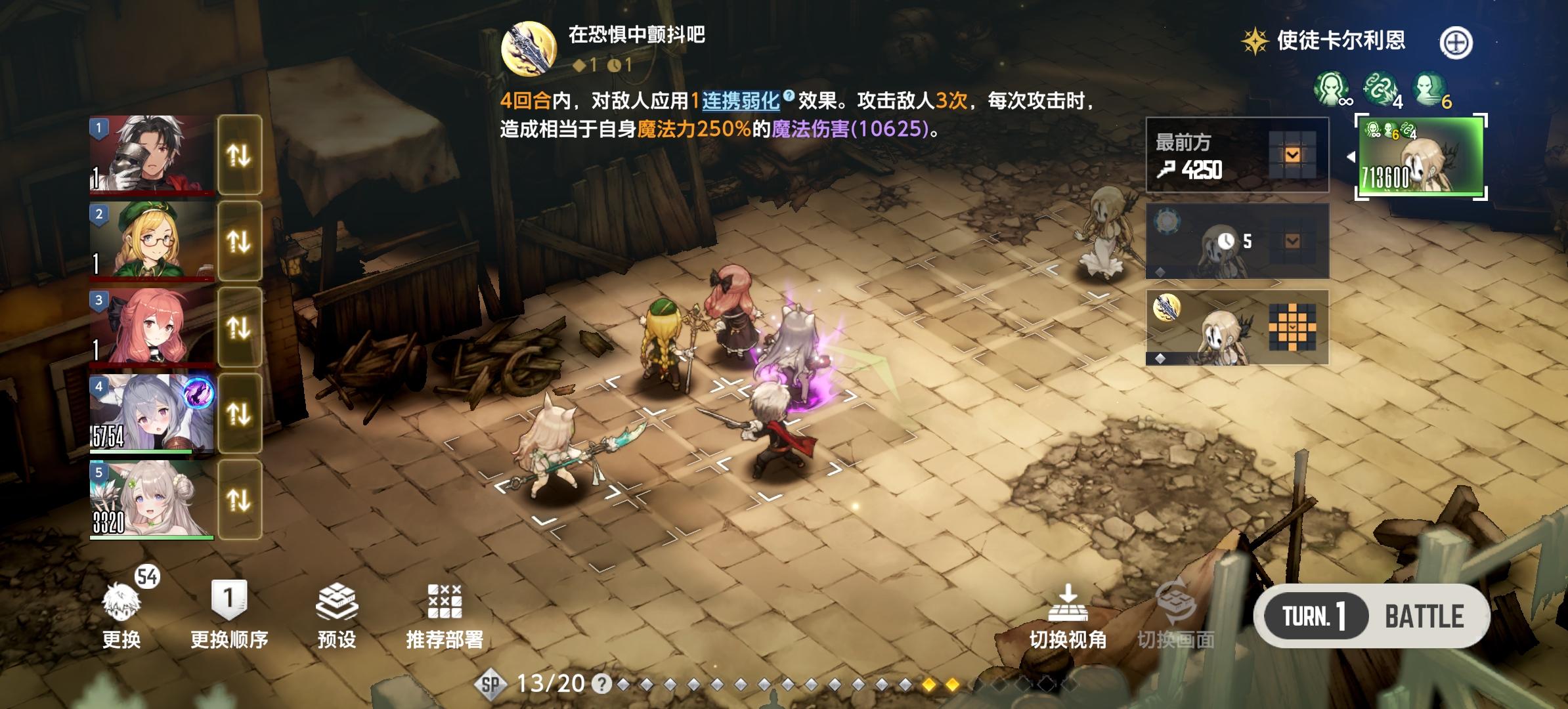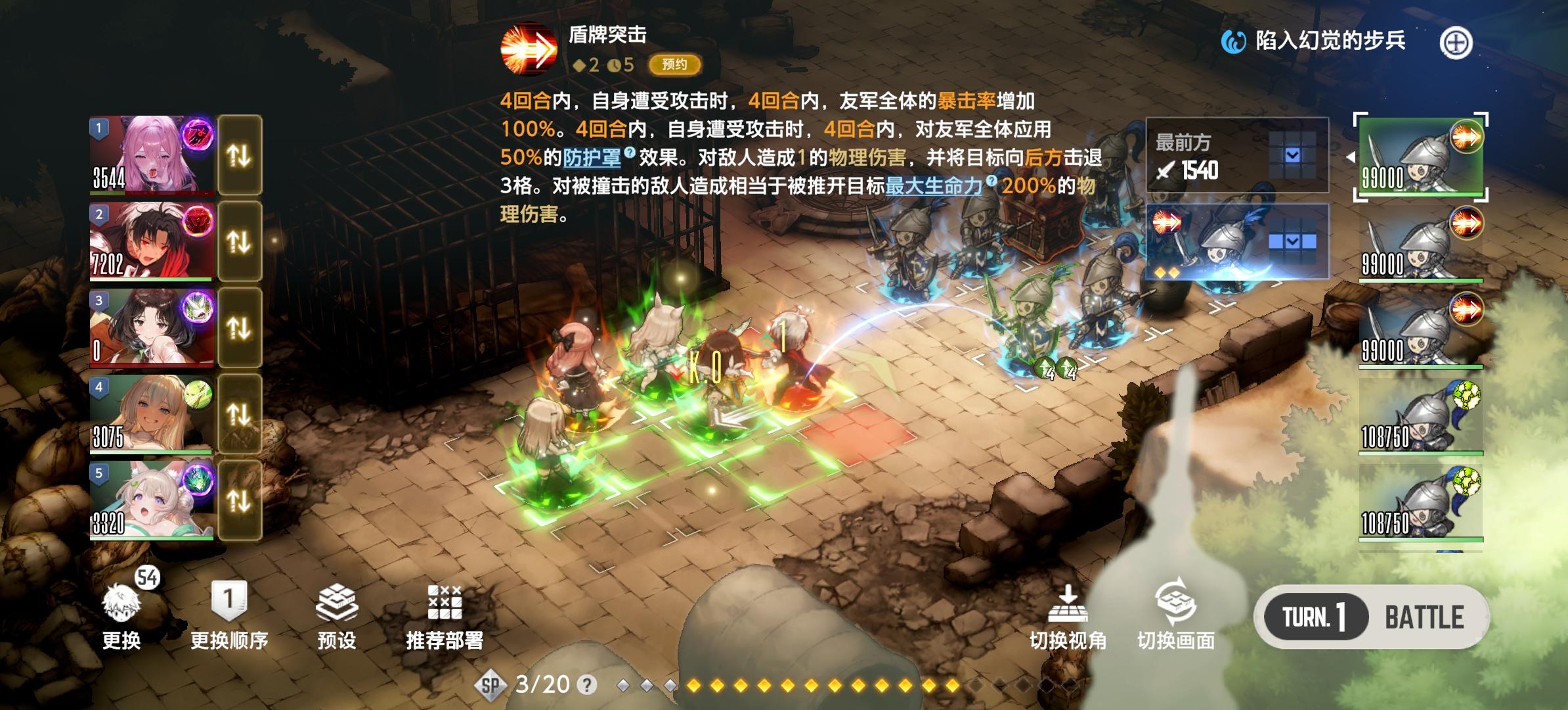 开局有15sp,所有回复sp是回复下个回合的,尽量开局让所有角色都可以释放技能。