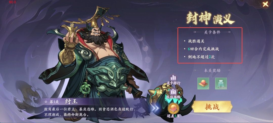 封神演义属于单人PVE玩法,共有36关,难度对比封魔洞要低不少,值得注意的是:封神演义设有通关星级条件,不同关卡对应不同规则,累计星级可获得阶段奖励。我们在追求通关奖励的同时,也可以了解到游戏里各人物间的背景与关系。