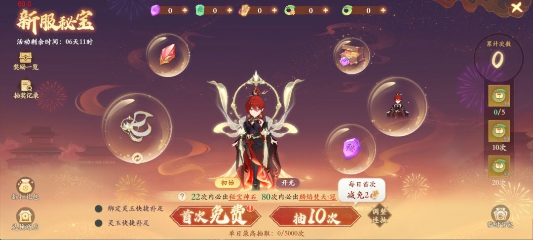 1、每日抽奖折扣必参与:每日免费1抽、十连抽减免等。