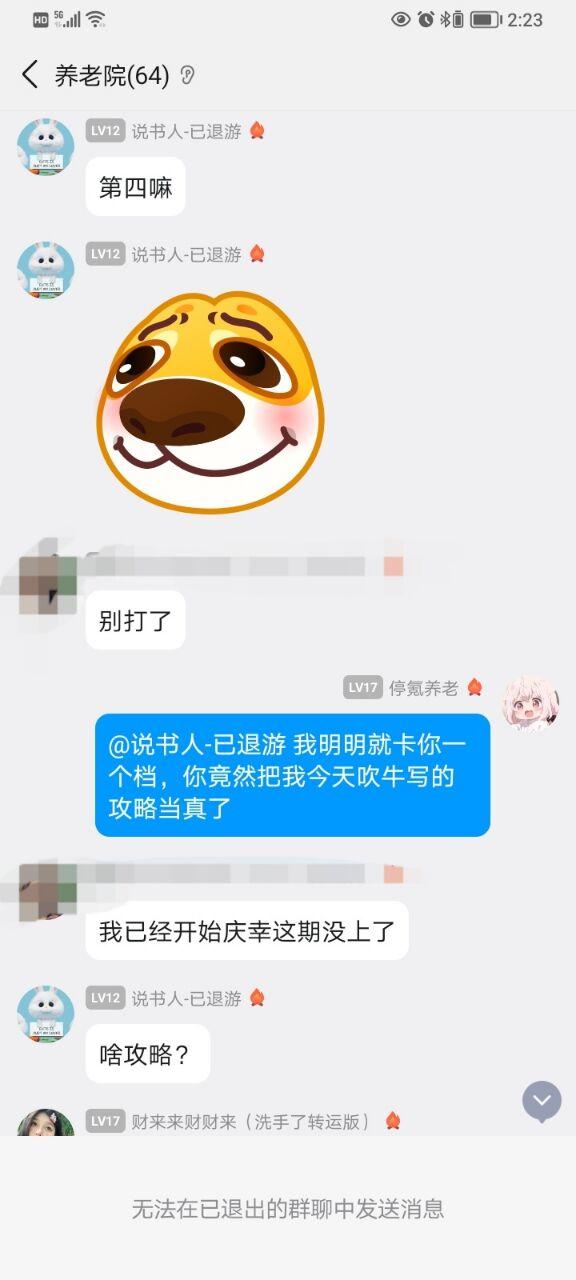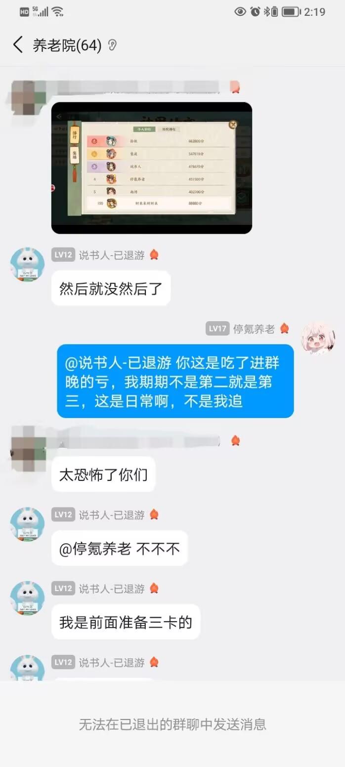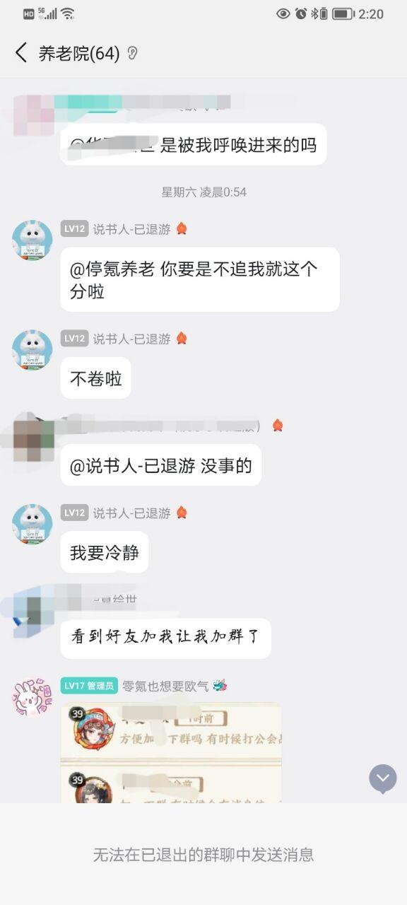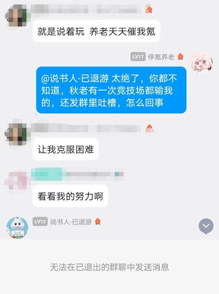从这里开始,他就一直嚷嚷着要退游,但是我已经五次说明,我会让给他了,我不会跟他争。这个时候,这个人还很谦让的,大家都在一起嘻嘻哈哈。