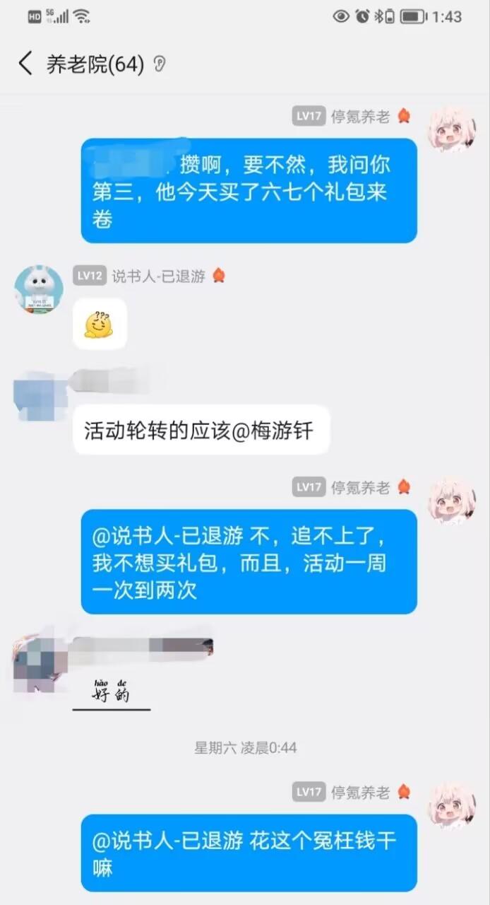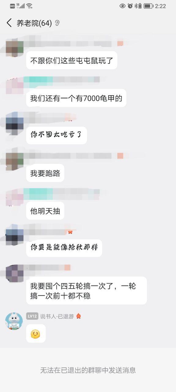事情是这样,两天前有龟甲活动,我们都有意拿前三,排名分为第一名秋总,第二名曼波,第三名我(停氪养老),第四名说书人。