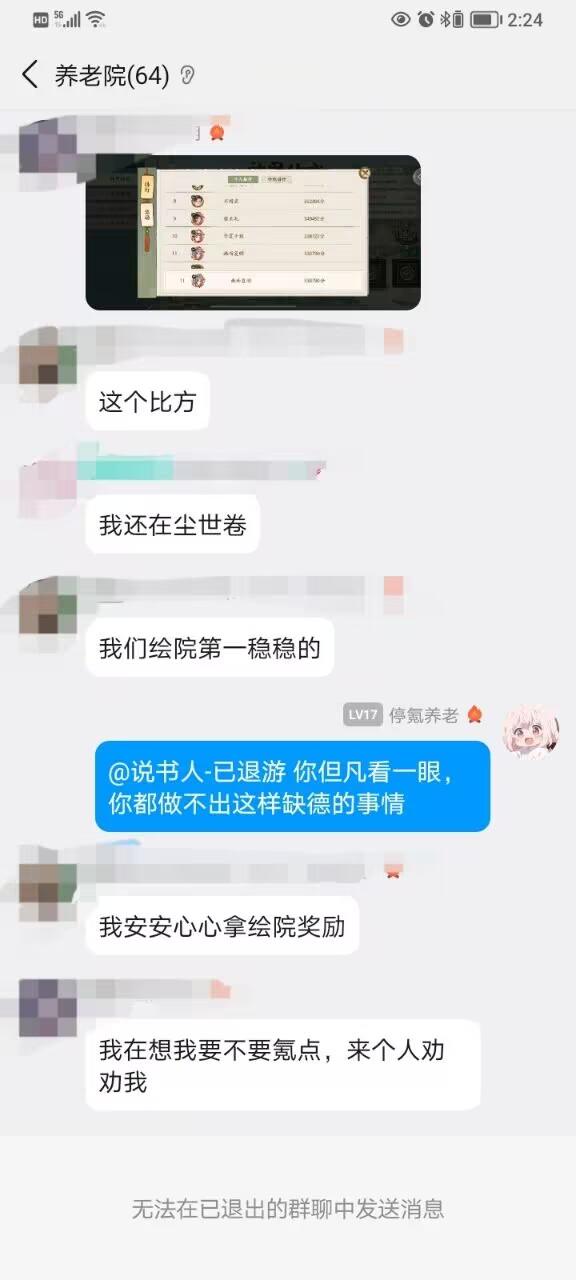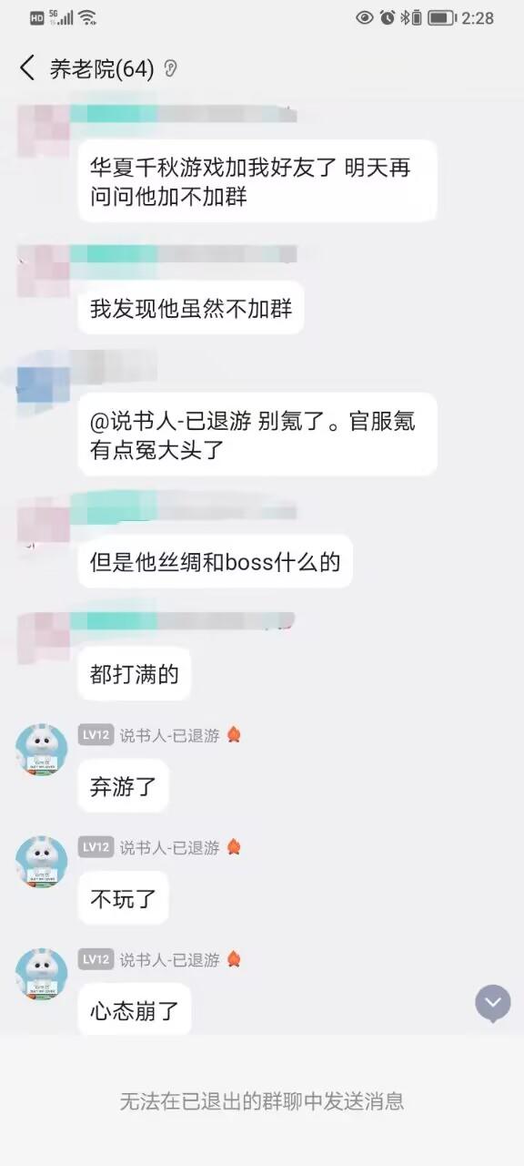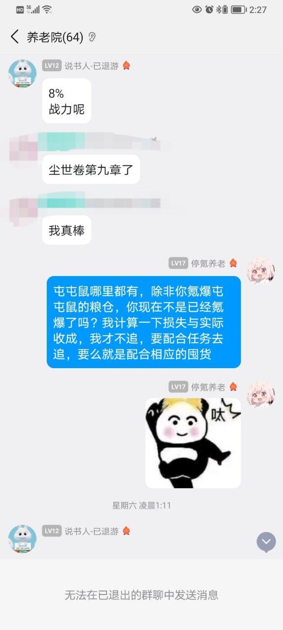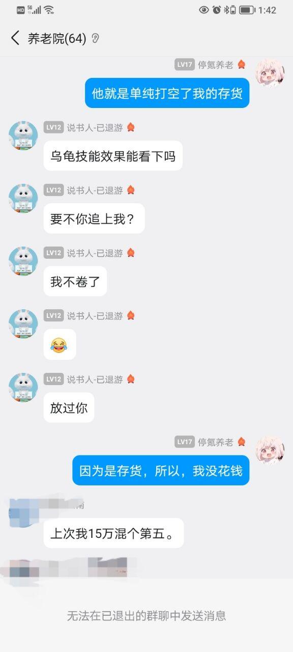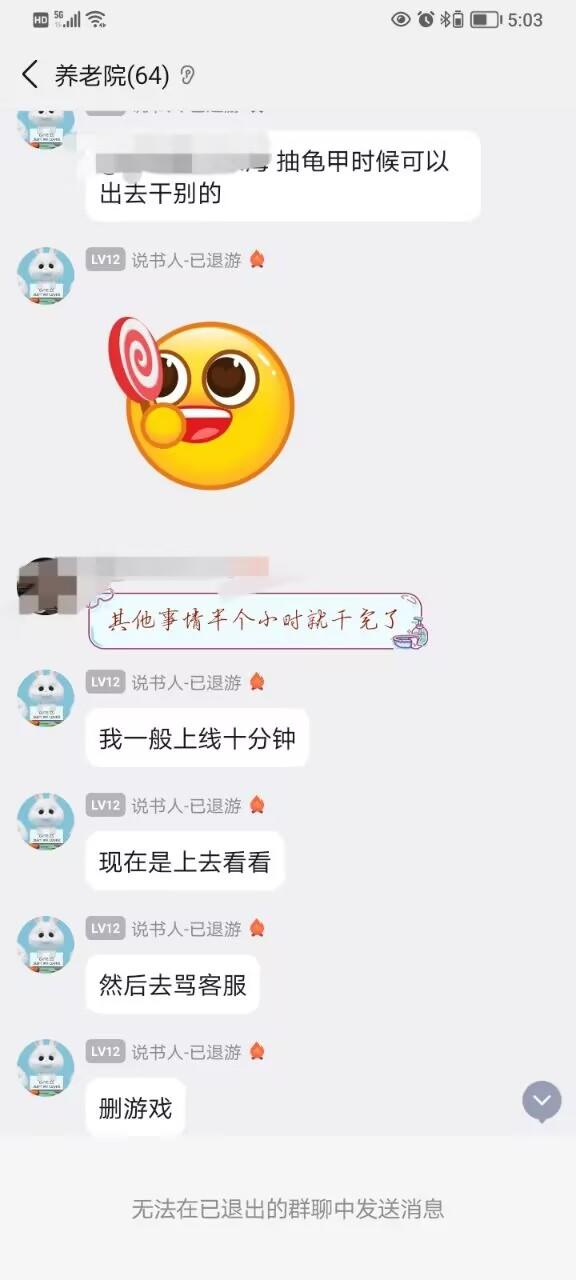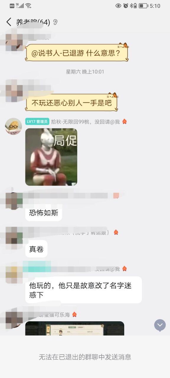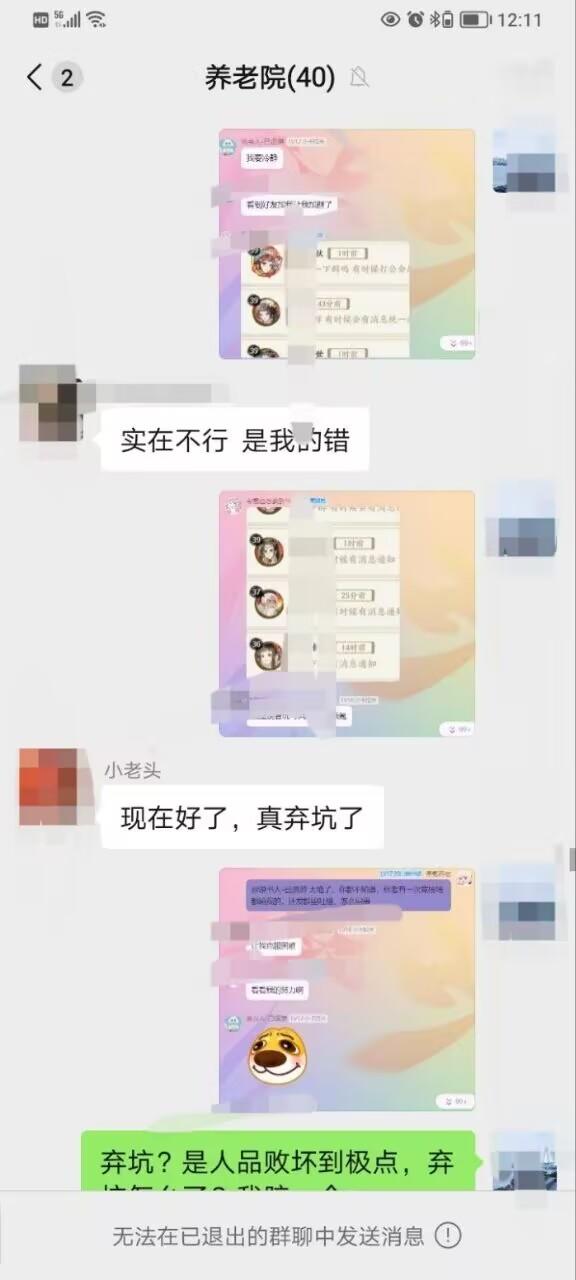 我已经五次说了要让给他了,他一直在公会群里面发他要弃坑了,他弃游了,他删除游戏了,见他这样说,我便把资源用上去了,不是我存心,有意去竞争,因为他之前的表现就是一个很好说话的人,大家都是彼此谦让的,但是让人没有想到的事情发生了,谁都看出这样谦让皮之下,就是两面三刀的底色。