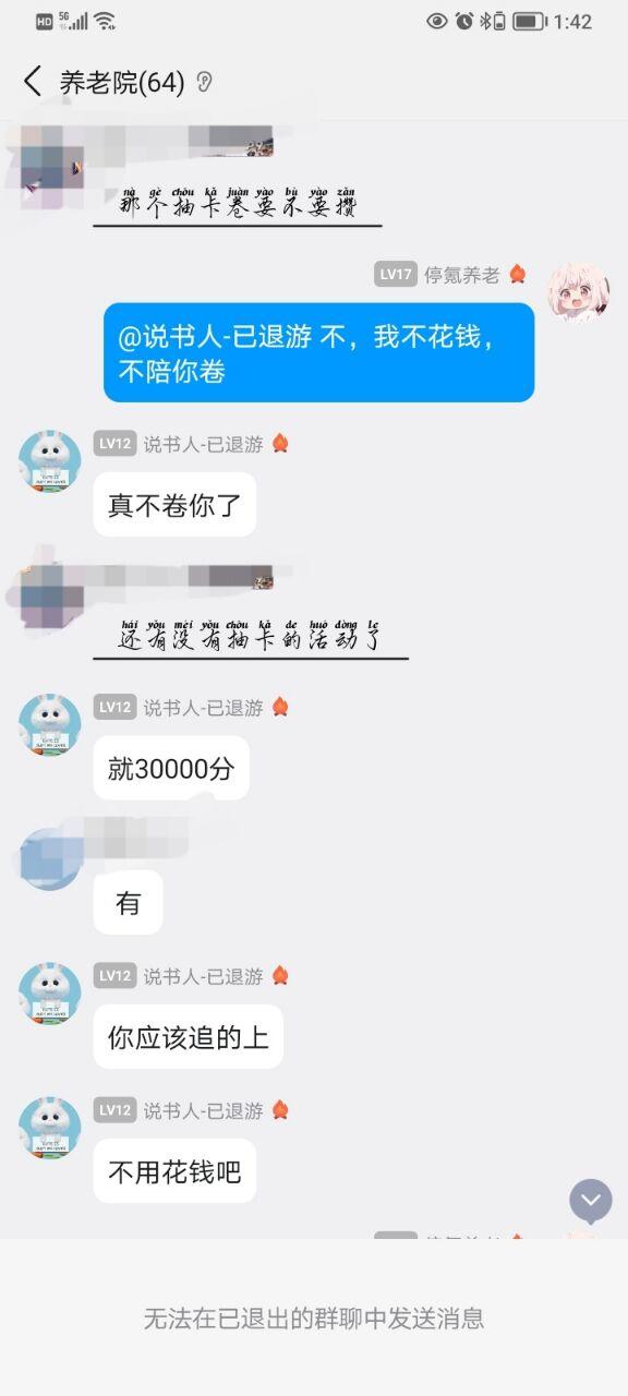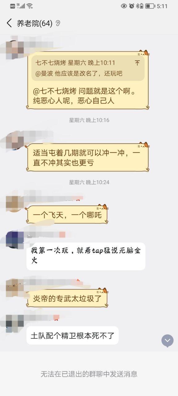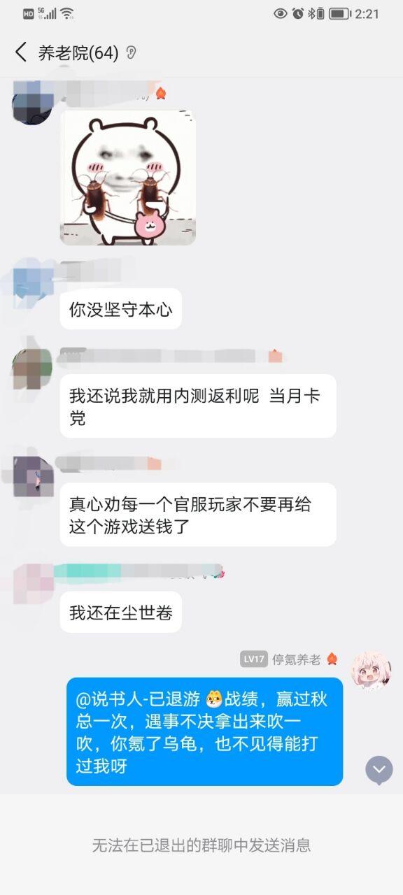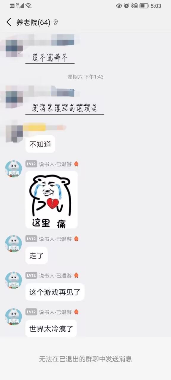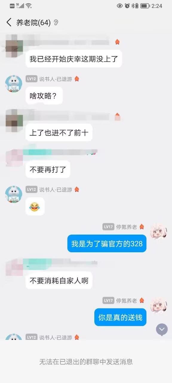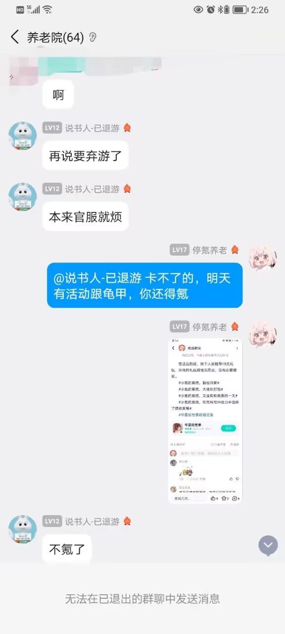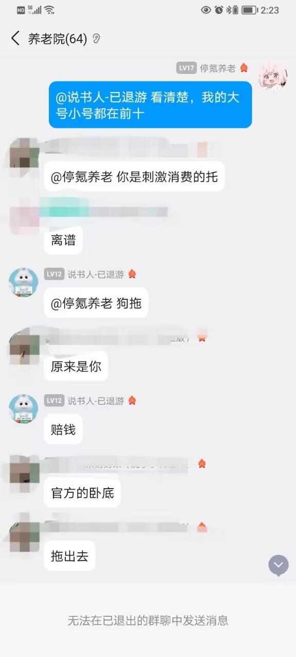 我已经五次说了要让给他了,他一直在公会群里面发他要弃坑了,他弃游了,他删除游戏了,见他这样说,我便把资源用上去了,不是我存心,有意去竞争,因为他之前的表现就是一个很好说话的人,大家都是彼此谦让的,但是让人没有想到的事情发生了,谁都看出这样谦让皮之下,就是两面三刀的底色。