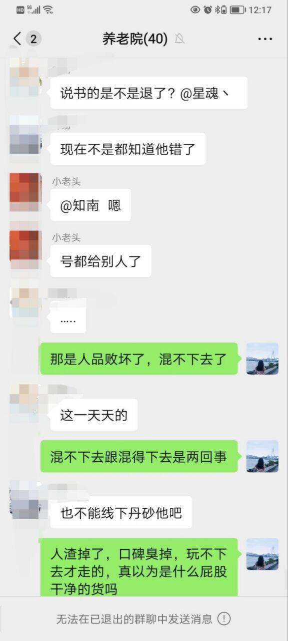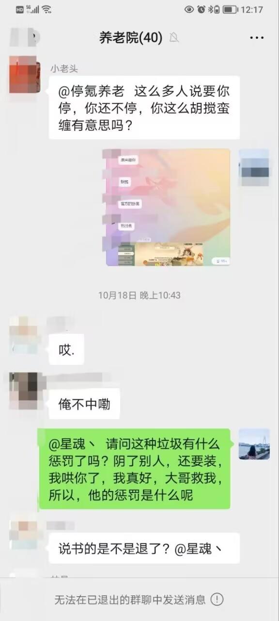 因为养老院的Q群与V群是分开的,所以,在这位倒霉大哥出来说话的时候,我被V群的星魂大佬艾特了,对对对,书接上回,星魂便是作妖男的大腿。