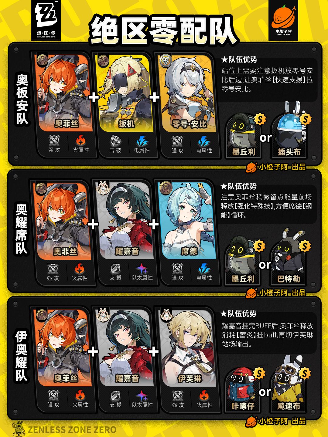 这一期是全角色的配队情况,橙子加入了卢西娅、真斗、奥菲丝的一些配队,同时也将过去的一些配队进行了更新。