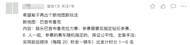 最近,小可在后台和社群里,可是被咱们车手们的脑洞给惊呆了!新赛季还能怎么玩?是你们给出了答案: