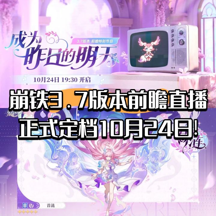 《崩坏:星穹铁道》官方于10月20日正式宣布,3.7版本「成为昨日的明天」前瞻特别节目将于10月24日19:30播出,本次版本作为翁法罗斯篇的最终章,将推出五星限定冰属性记忆命途角色昔涟作为爱莉希雅同位体的昔涟未上线便引爆玩家社区,都不敢想昔涟上线后热度会有多高