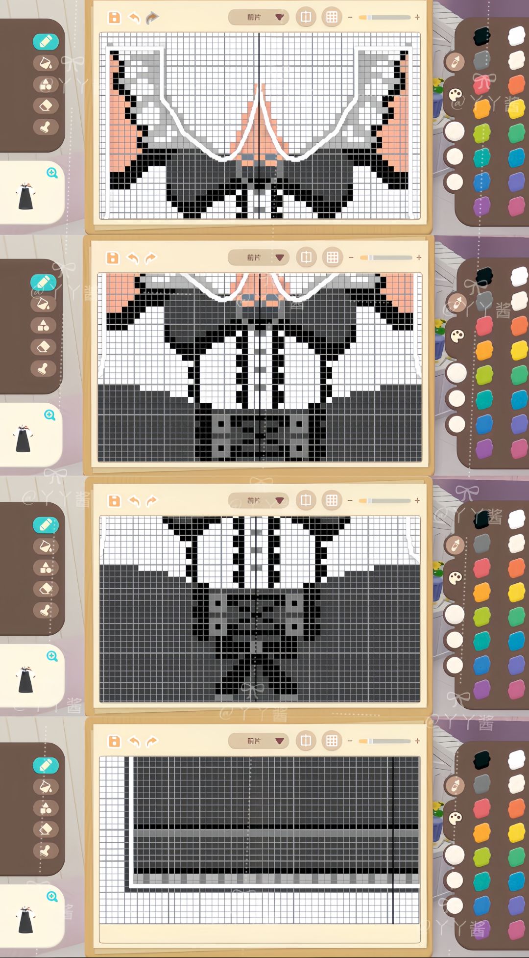 本参赛作品《冷雾锁心》风格为产量系千金风。服装色系以黑、白、灰色系为主,使用蕾丝、波浪边、爱心、水钻、珍珠等元素将情绪与服装语言深度绑定。黑白色系是“冷雾”的视觉化身,白色如雾的朦胧、通透,勾勒出情绪的轻盈与留白;黑色似雾的深沉、厚重,承载着悲伤的内敛与沉淀,二者交织,恰如寒雾包裹心脏的层次感,没有浓烈色彩的冲击,却用极简色调传递出“平静下藏着暗涌”的情绪张力。从情感内核看,“锁心”是作品的灵魂——服装线条不追求夸张的戏剧感,而是以利落却柔和的剪裁,模拟“心被雾锁住”的状态:既不是激烈的束缚,也不是彻底的封闭,而是像人在悲伤中那份安静的自我包裹——表面的平静是白色面料的利落廓形,内里的伤感是黑色面料的细腻质感,让穿着者与观者都能在黑白的呼吸感中,感受到一种“欲言又止、余味绵长”的情绪共鸣,诠释出悲伤与平静共生的独特美感。