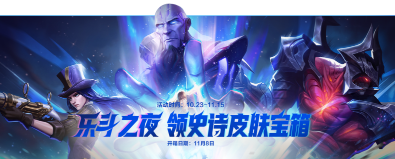乐斗之夜 领史诗皮肤宝箱10月23日11:00-11月15日23:59活动期间,召唤师完成活动任务升级宝箱,即可于11月8日开箱,最高免费获得随机1款史诗皮肤!