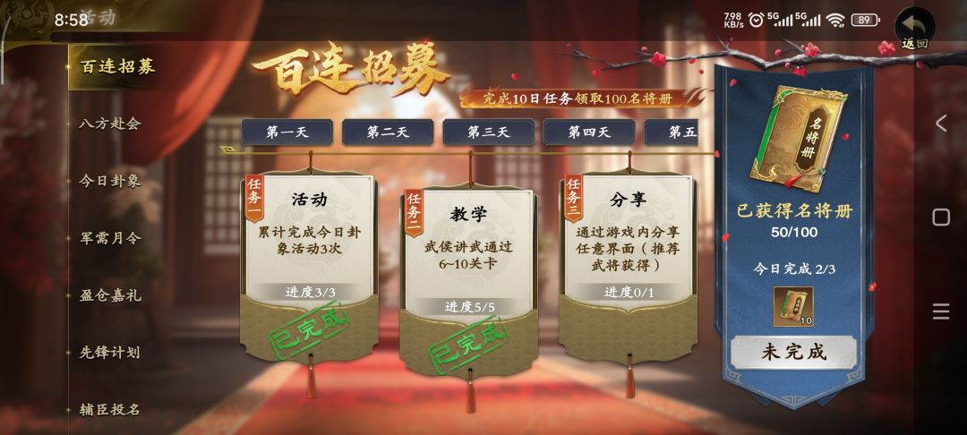 3、分享任务不局限于武将分享,可以分享其他活动等。