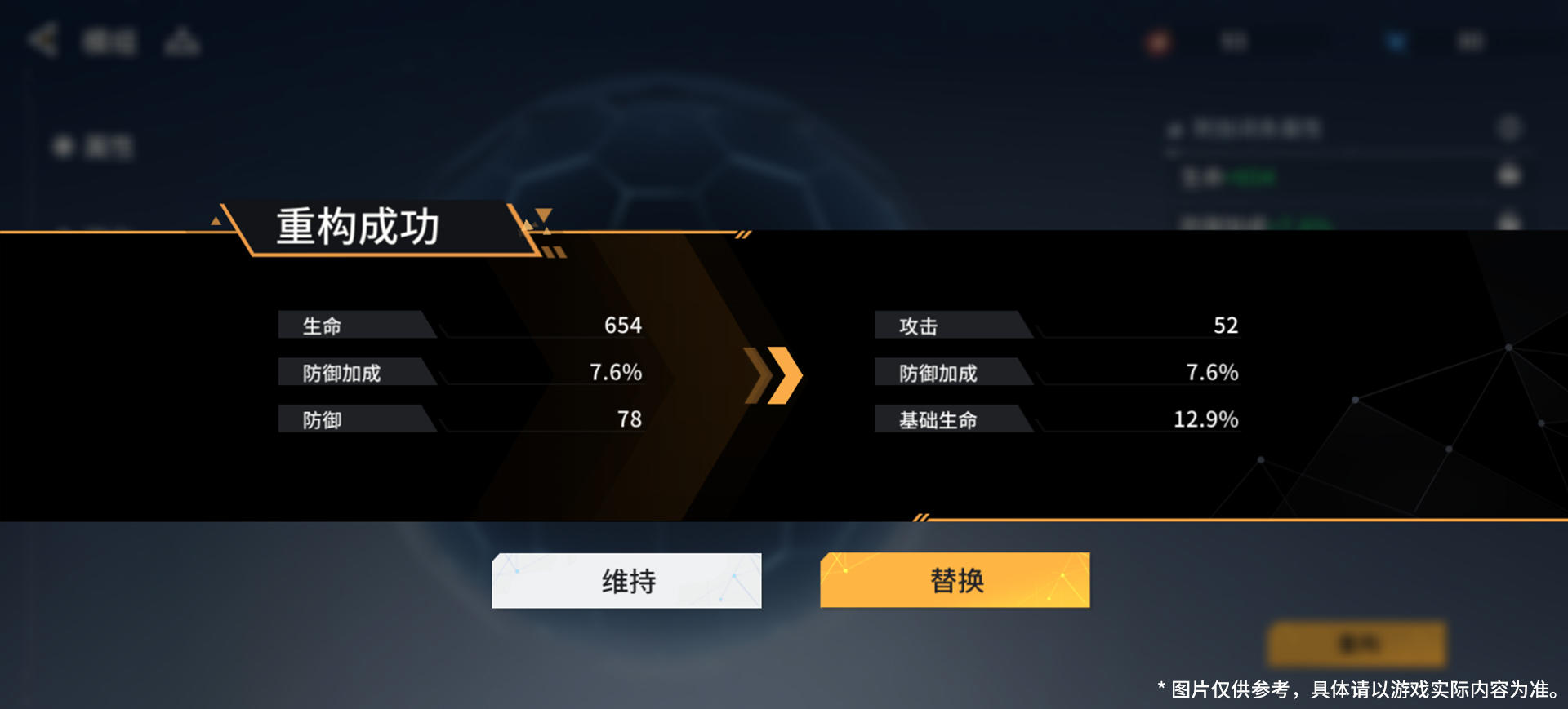 2. 如若生成的 3 条新属性词条符合预期,可选择 “替换” 选项,以新属性替换模组原有的附加词条;如若对新属性不满意,则选择 “维持” 选项,保留模组原有的属性状态;