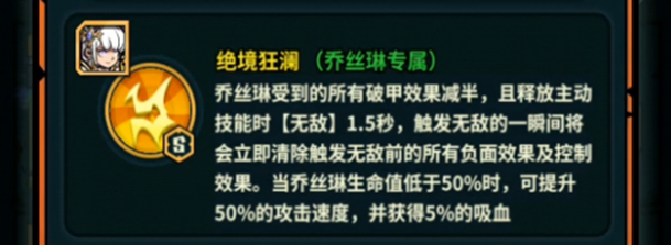 乔丝琳神器 字数最多的神器技能,增加了无敌特性,让乔丝琳如虎添翼!