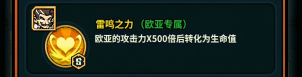 欧亚神器 我认为欧亚的神器技能设计是小镇的神器技能设计的巅峰!所有英雄都可以不带专属神器,但是欧亚不行,没有专属的欧亚不如紫卡!这就是真正的“人器合一”。