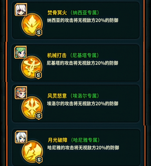 尼基塔&纳西亚&埃洛尔&哈尼雅神器 破甲是输出英雄的必备词条。