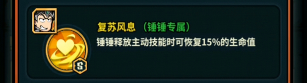 锤锤神器,第一个神器架子的概念就是从锤锤开始的,对于坦克来说生命是最重要的!尤其是觉醒25级之后。拉满CD后5秒恢复15%的血量,简直是赖皮!