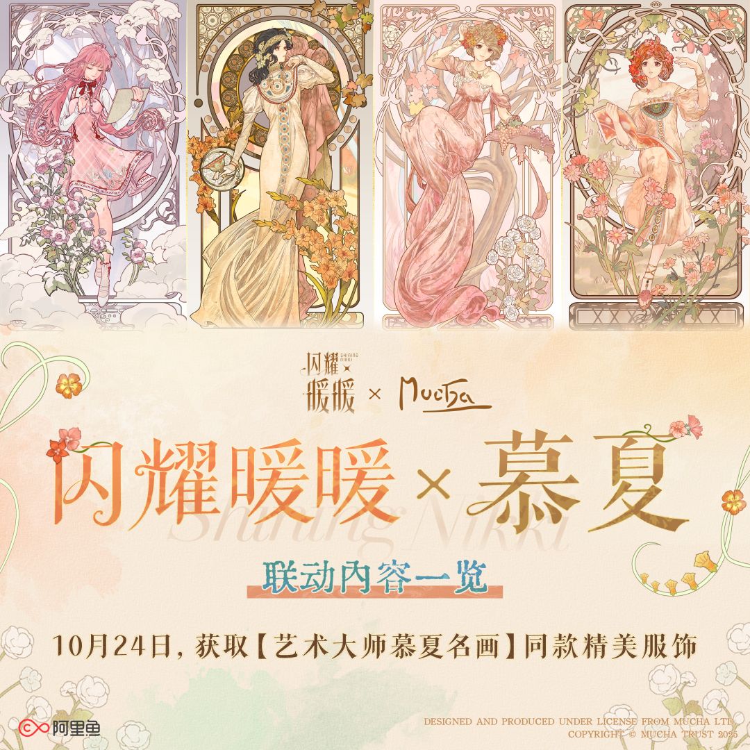 10月24日,参与《闪耀暖暖》× 阿尔丰斯·慕夏联动主题活动【繁花、夏曲与史诗】获取3套联动服饰!
