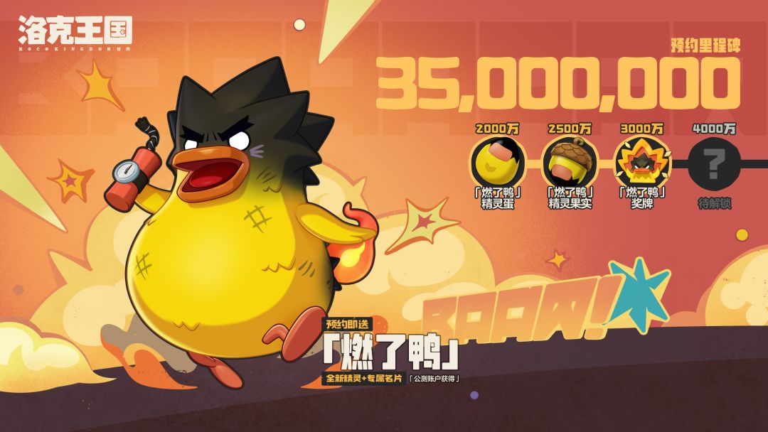 在测试即将到来之际,学妹很高兴能与大家分享个好消息:《洛克王国:世界》全网3500万预约里程碑达成啦!我们衷心感谢每位小洛克的支持,在已有奖励的基础上,特意加送这份赠礼:「燃了鸭」奖牌。只要预约,公测就送!