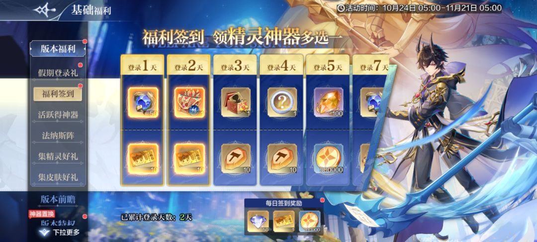 活动内容:新一期累签活动开启!每日签到可领钻石*50、召唤券*1、金币*10万、更有额外累积签到奖励你解锁!别忘了每日登录噢~
