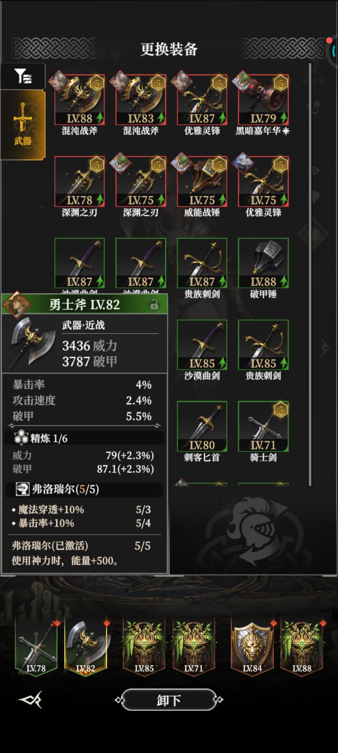 5.光弓(第二个天赋减能量,其他都增加个人输出。我加到了35刃也是稍微加点输出)为了省资源,和雷娜共用了吸血套。图3可以看出,当时威力高的吸血套(1.5W)在雷娜身上,符文也忘了换。光弓身上的威力才1.3W,全是垃圾紫色B符文。我看了别人的攻略,光弓用输出的赫拉儿或者摩多都行。