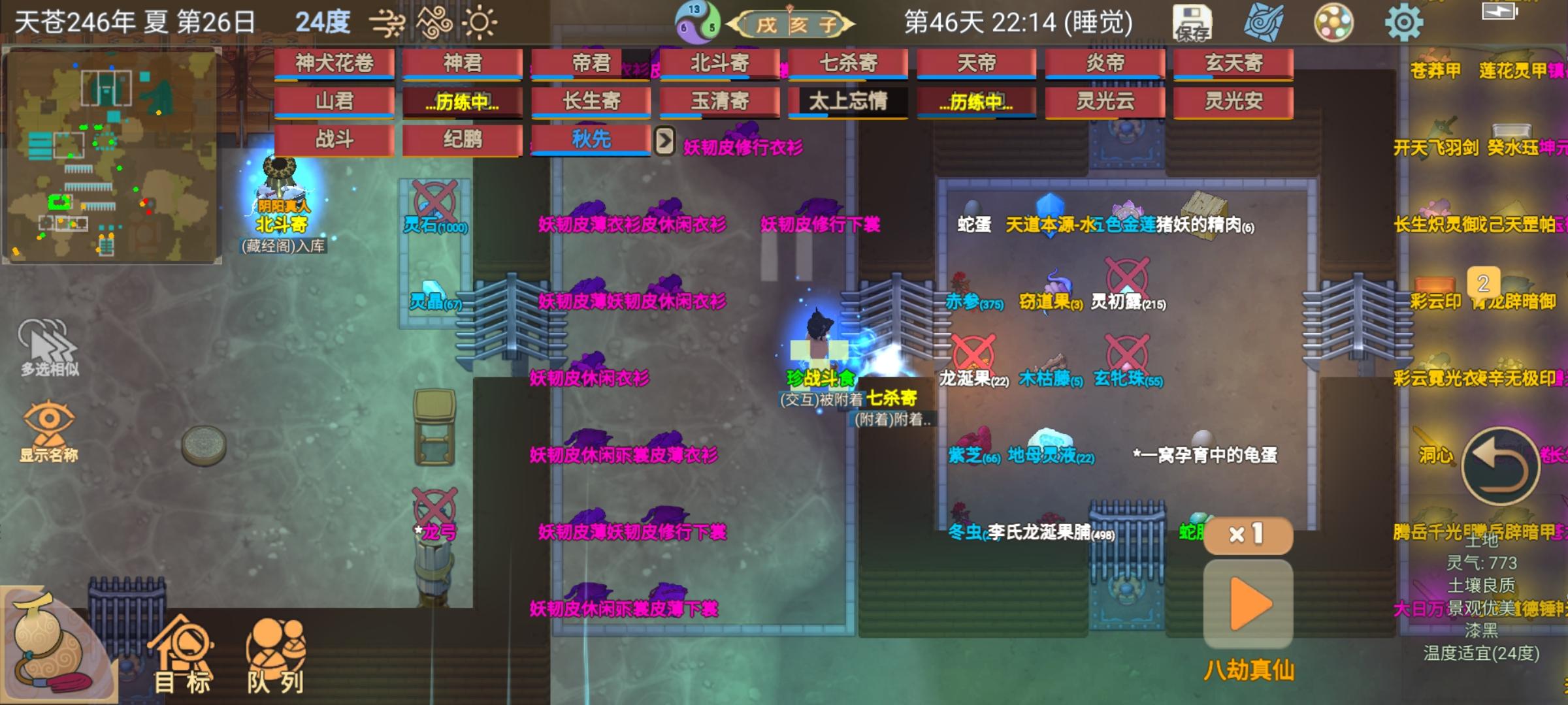 太上忘情回来直接喂12品淬炼的丹药和“五方化伤丹”。神君用《再造术》拉起来,吃“灵石”、“灵晶”、“聚灵丹”带上武器,吸灵结丹。