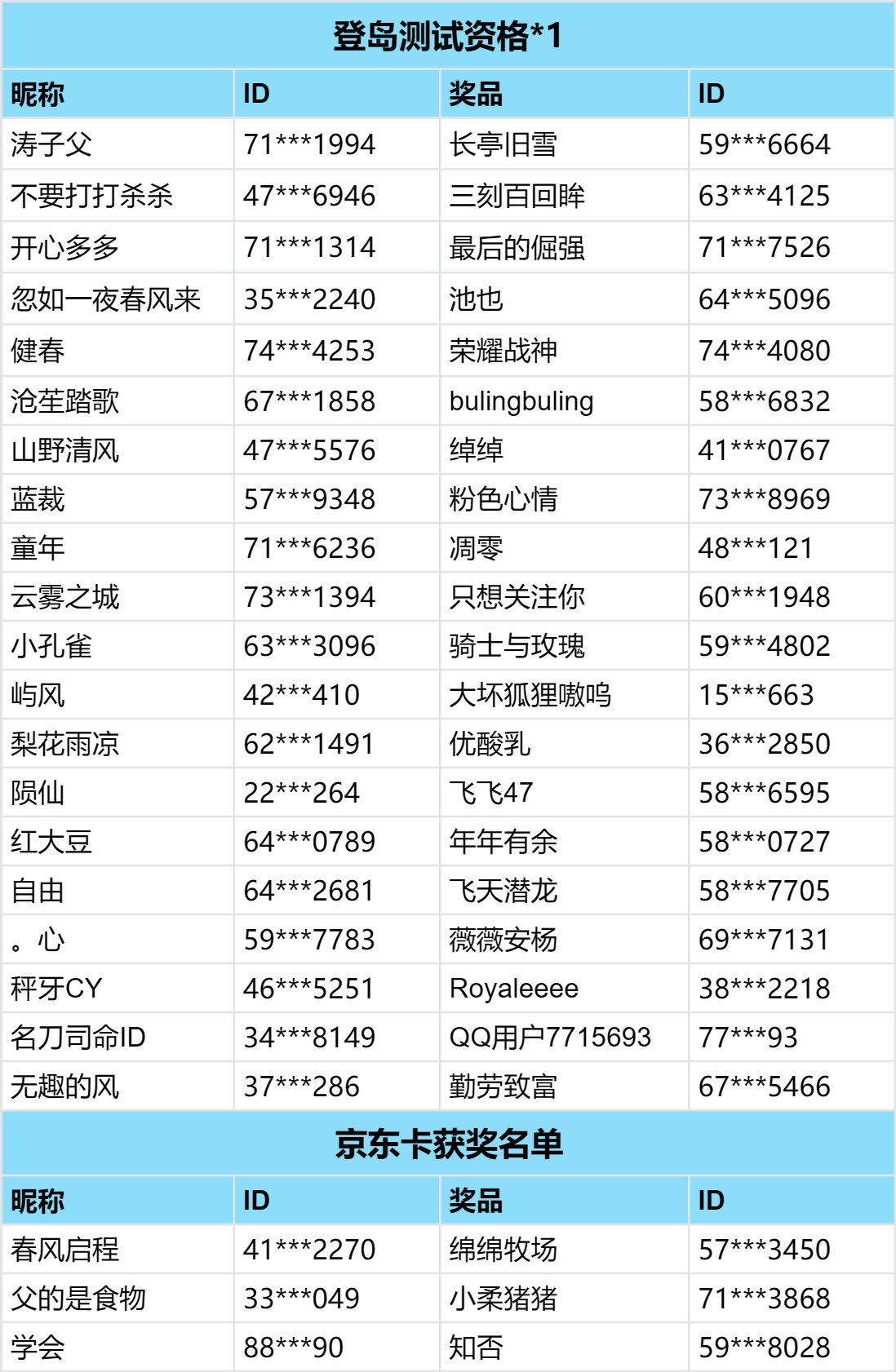 【已开奖】登岛测试资格大放送!参与互动更有京东卡奖励等你拿!