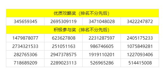 天秤座和策划小伙伴们认真阅读了所有投稿攻略,现在将对所有获奖旅者的QQ号进行公示。
