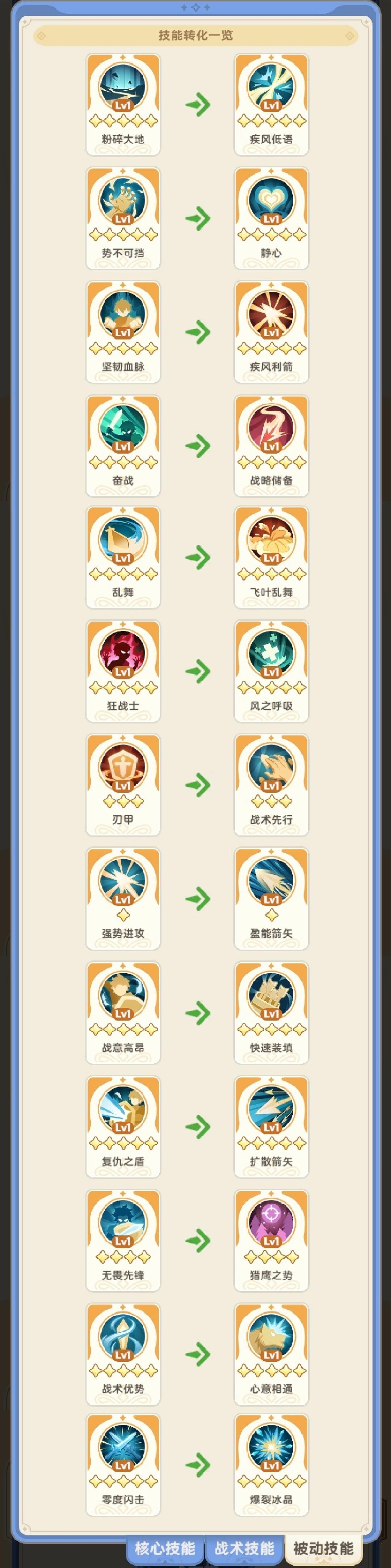 转职前可以确认自己的技能会被转换成哪一个技能