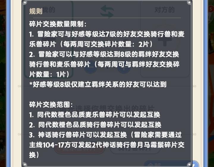 每两周可与达到8级的羁绊好友额外互换1片
