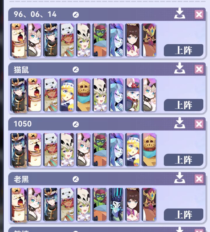 附上我通关用的最多的4个阵容。除了1196、1306、1414这三个比较看脸的关卡,其他大部分关卡就用1050和猫鼠两套来回凹(最终还是看老余神力),小部分就是奥克为首的大体型阵容拿老黑来砍会有奇效。