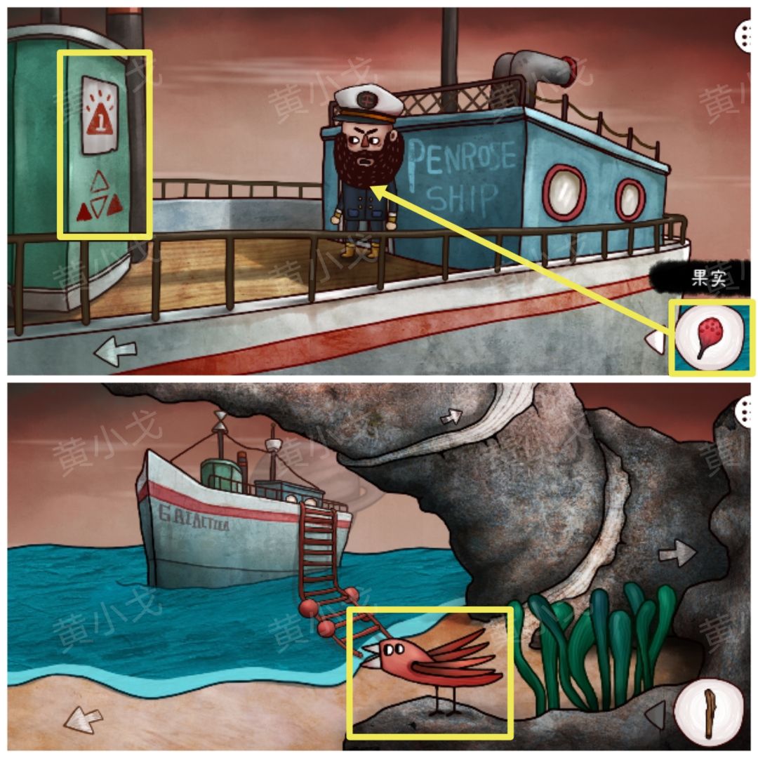 14.拿【果实】给船长;下船,点击红色的鸟,鸟飞上船