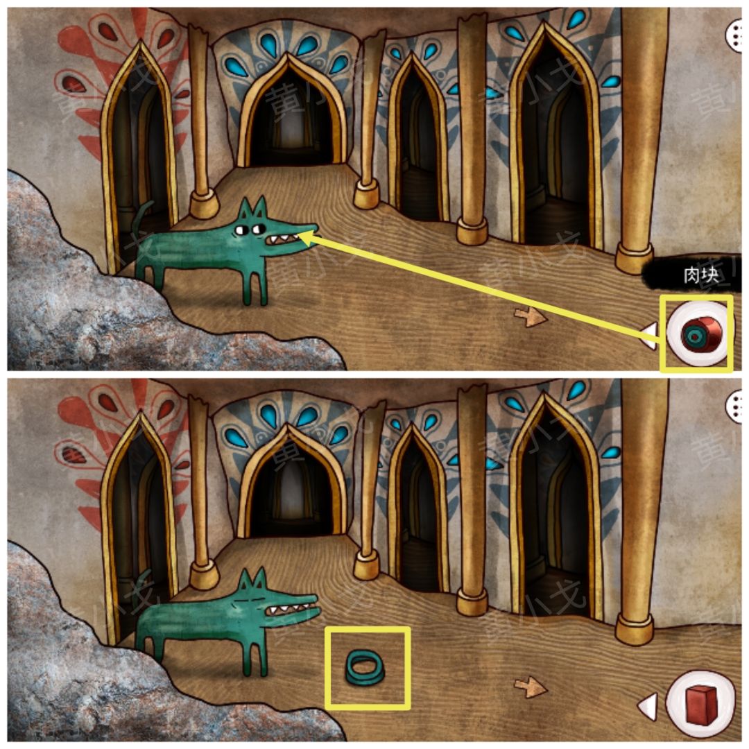 34.拿【肉块】喂狗,获得【蓝色骨头】