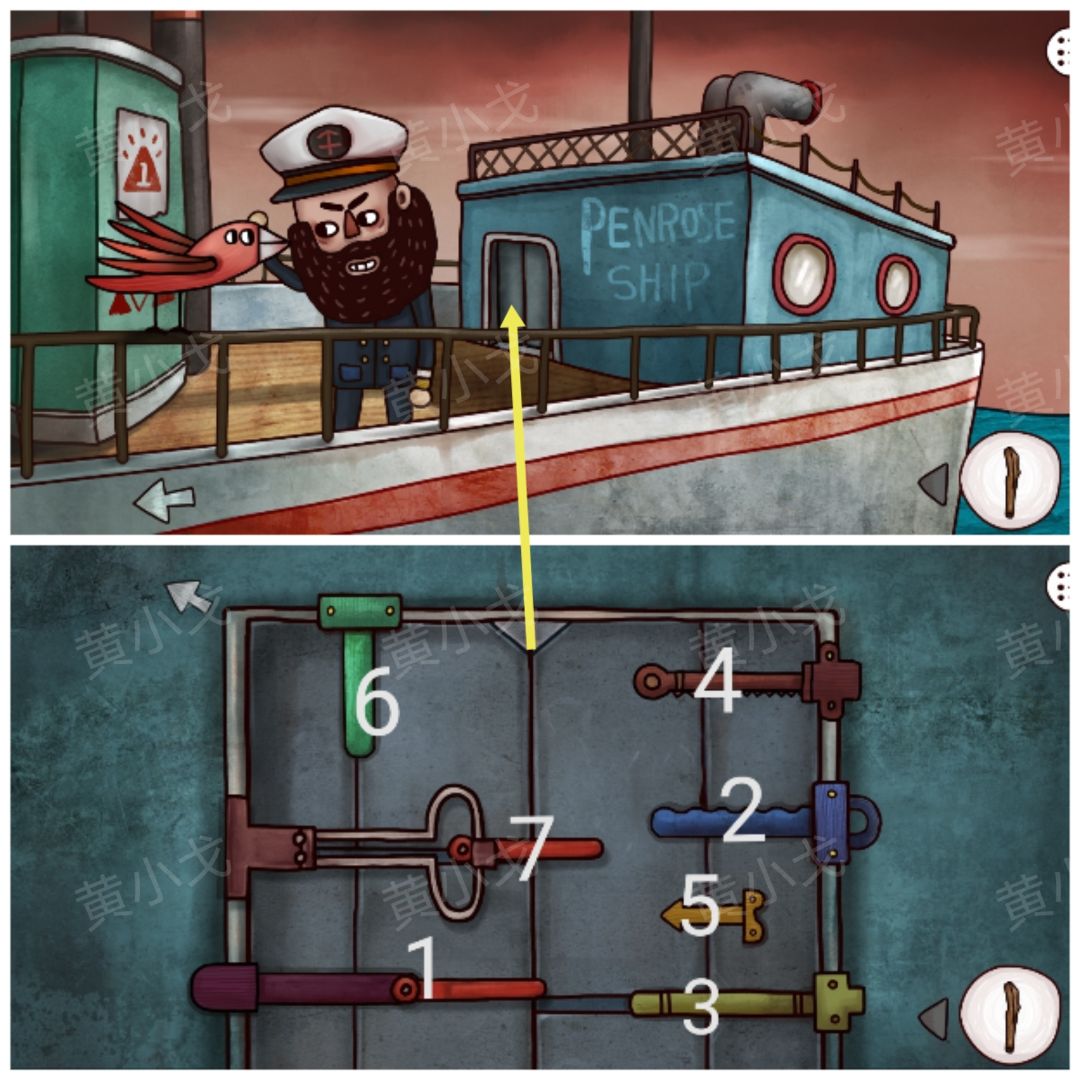 15.点击船舱门上的密码锁,完成小游戏,打开门