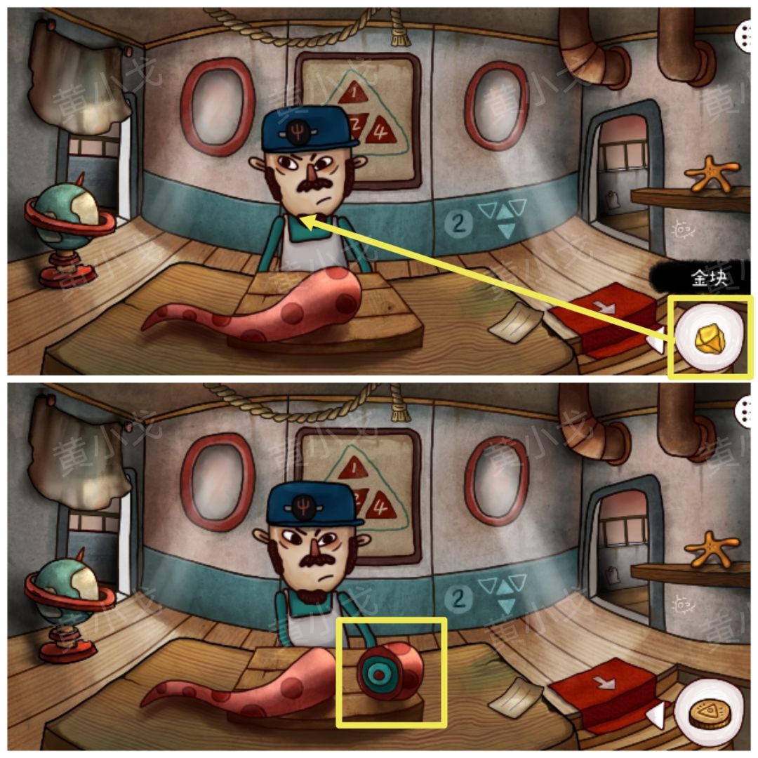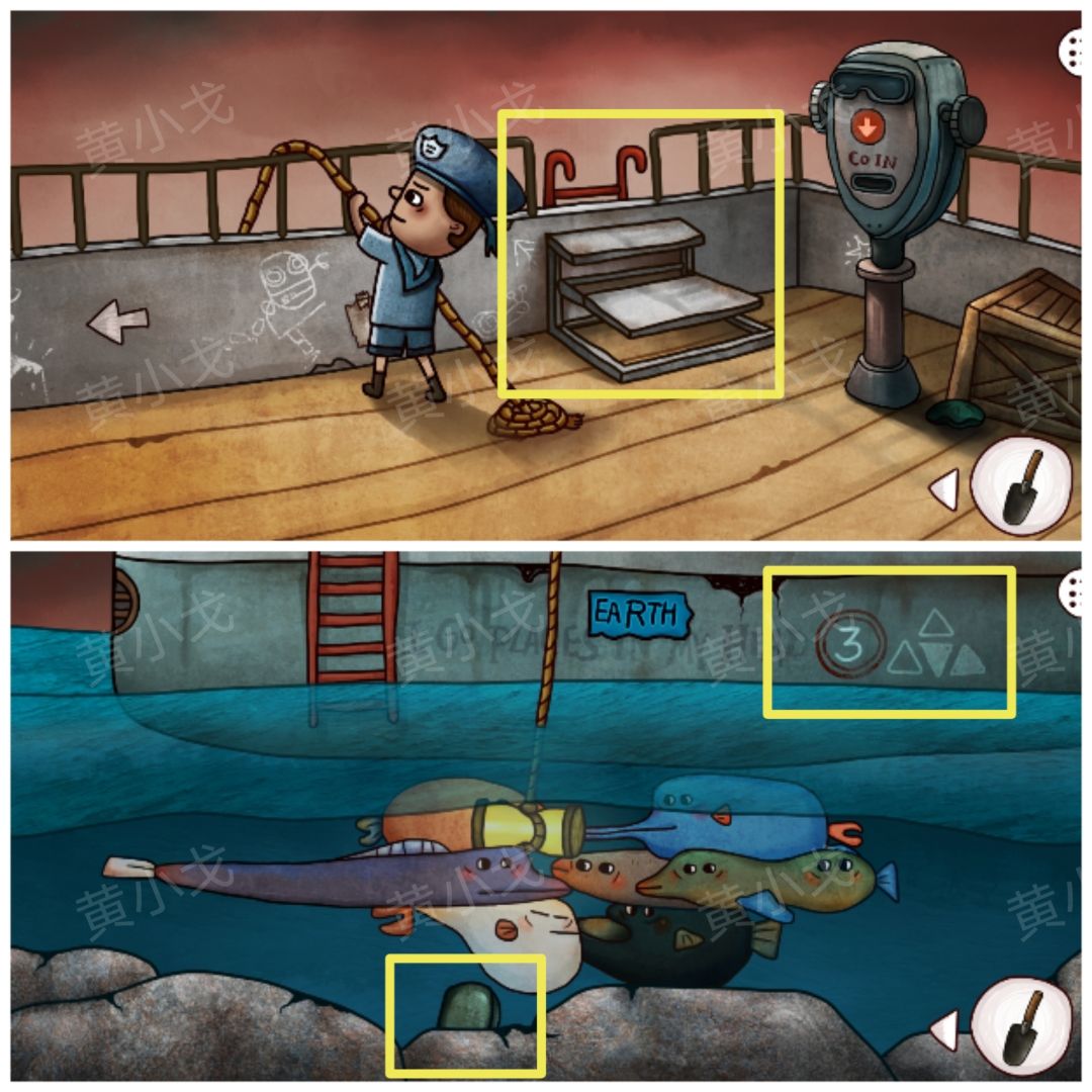 ♦️要拿灯管给甲板上的小男孩鱼才聚到一起,才能拿到道具