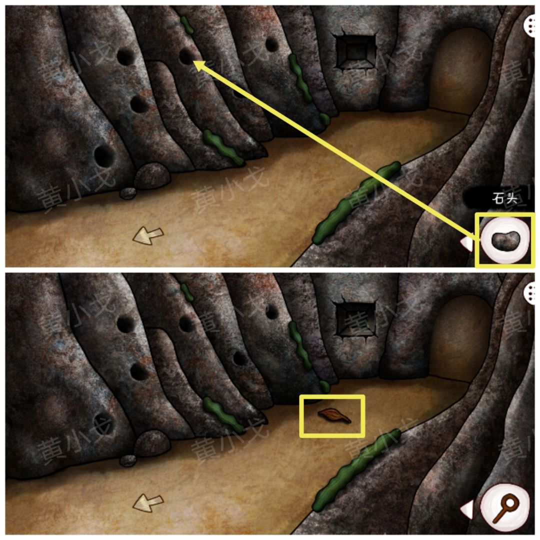 10.把【正方形块】放入凹槽中,打开石门
