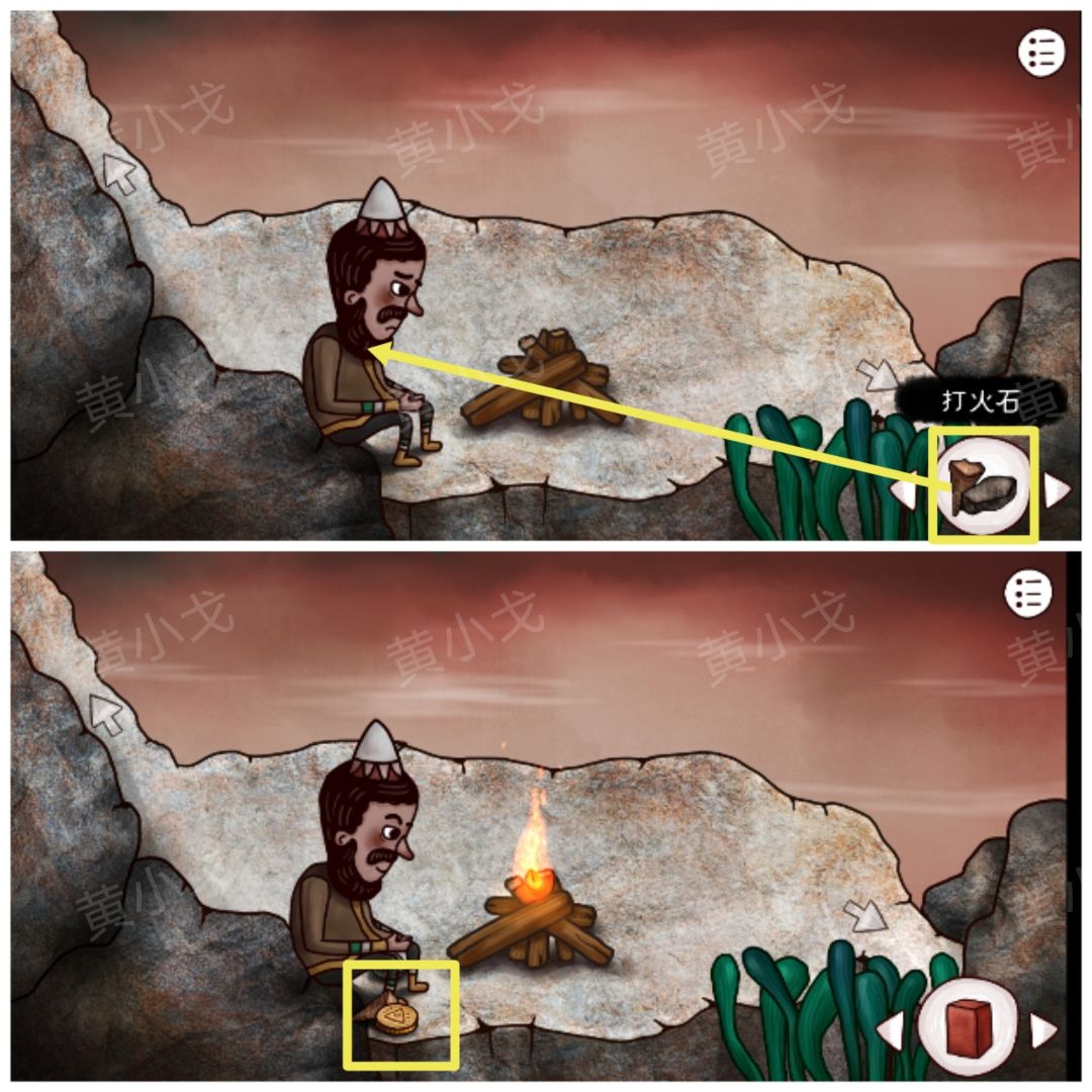 21.与老头对话,得知需要帮他点燃火堆;拿【打火石】给老头,获得【金币】