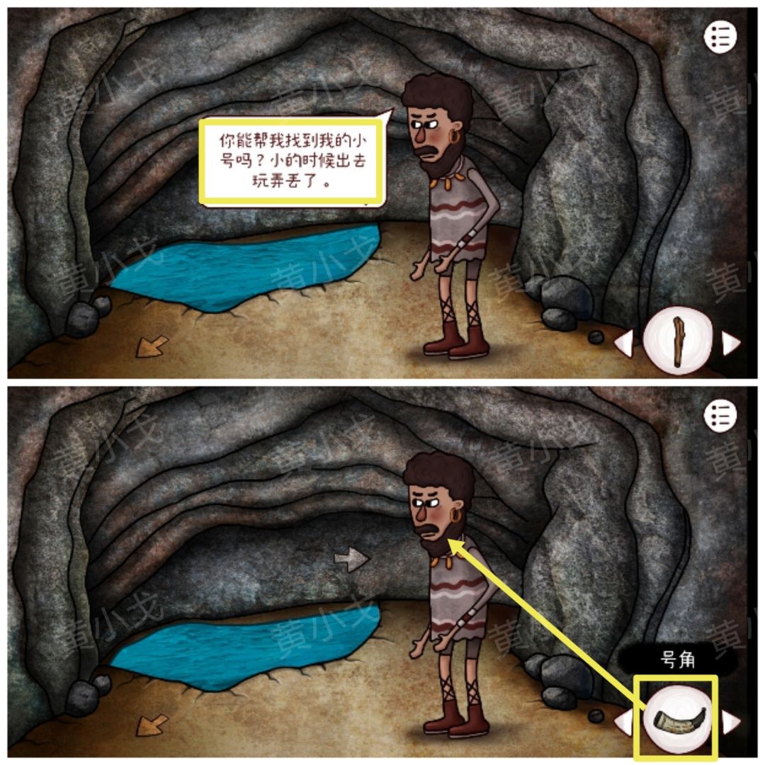 8.与男人对话,得知需要帮他找到小号,拿【号角】给男人