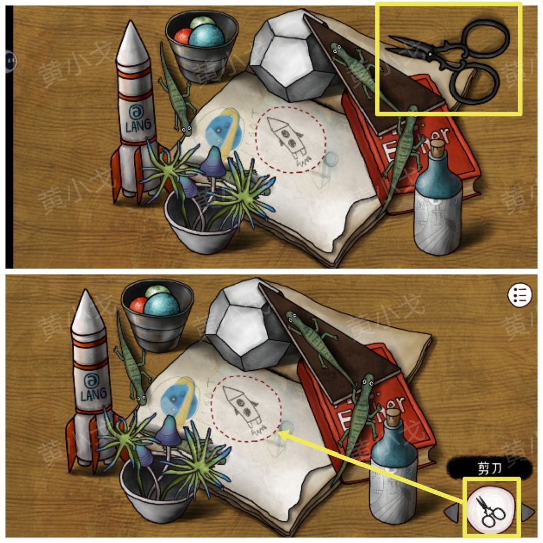 1.拾取【剪刀】;用【剪刀】剪下灯塔图案