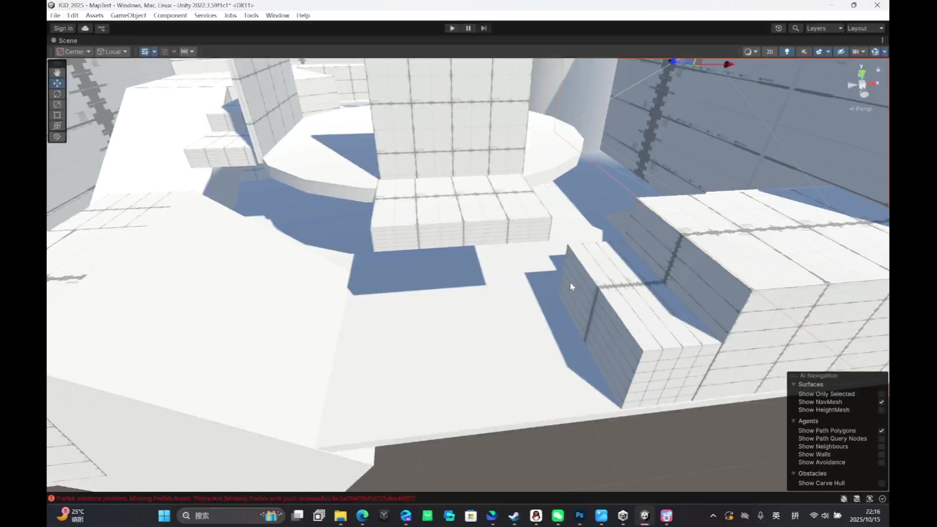 不过考虑到第一关为教学类的关卡,直来直去的简单搭建或许更便于玩家掌握好主要的功能,大致的设计思路就是将障碍,高低地面,敌人生成点于场景中摆放,然后在往里面添加bug供玩家寻找,基于这几点我们设计后面的地图也稍微有了点门路