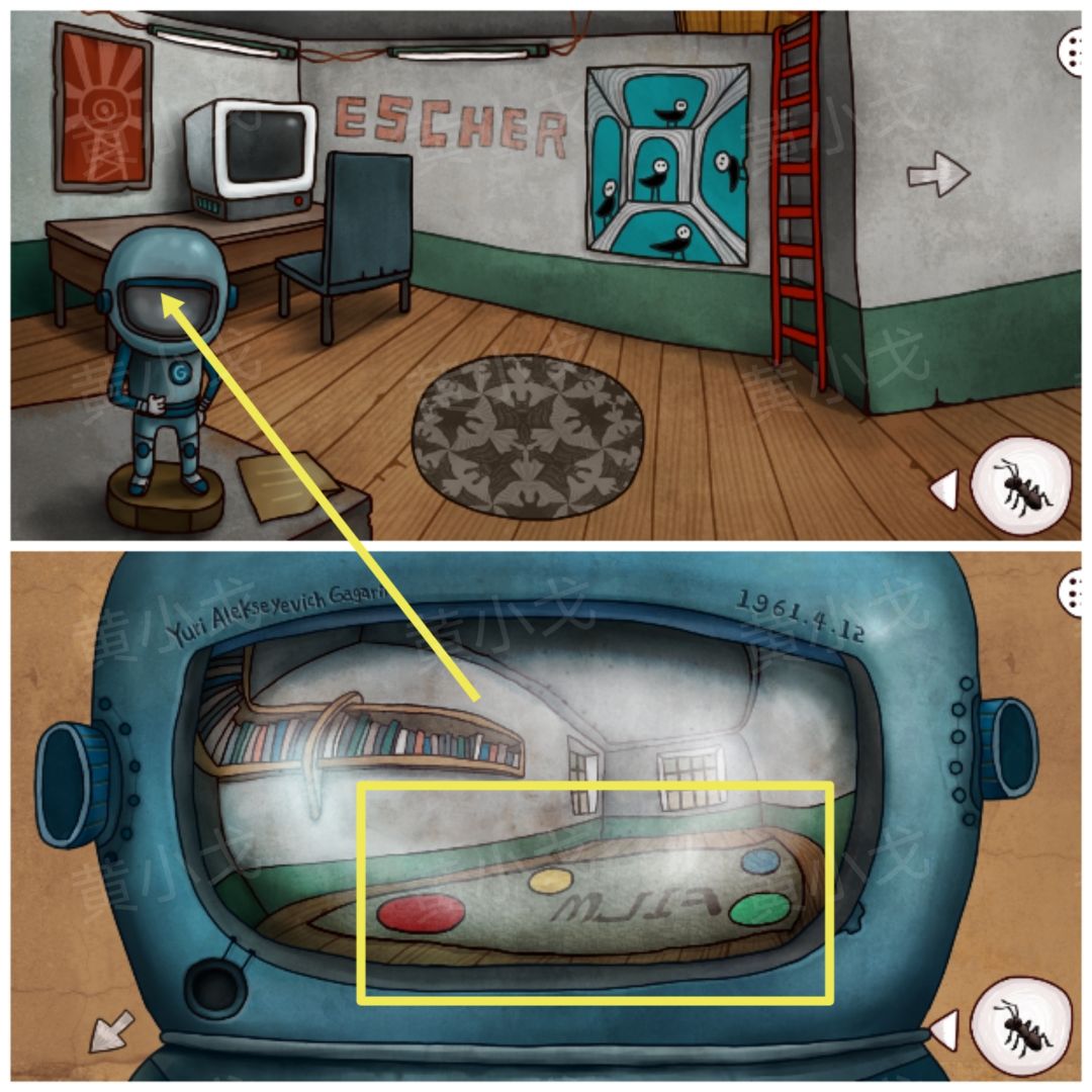 7.点击左侧墙上的机关,完成小游戏,出现一个门,回到童年