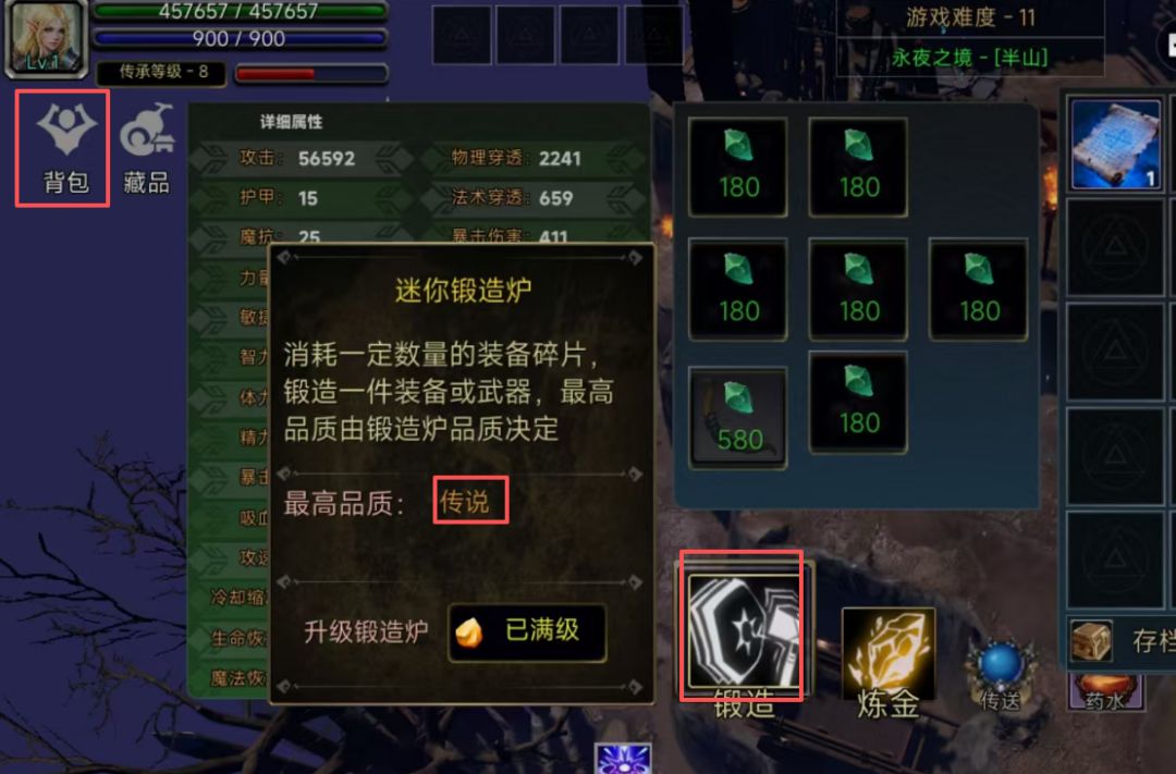 第五关的皇城下水道有个几个隐藏boss,最后一个小BOSS会爆一个”古龙号角“这个藏品必刷满。会让你锻造的时候有概率把装备变成神器.