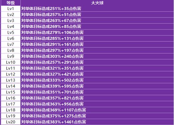 - 升级建议:伤害系数高,但作用范围相对较小。作为一个群体技能,其单目标伤害居然与单体技能大火球相差无几,在资源投入上可次于大火球等核心技能。