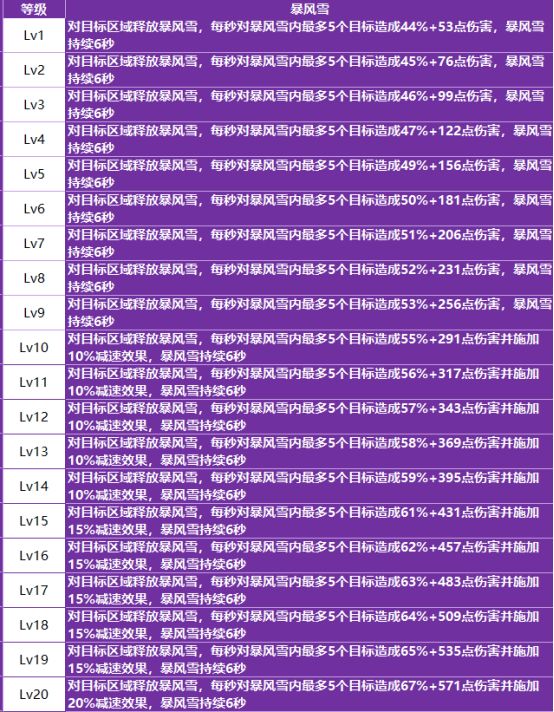 - 升级建议:平滑提升,无质变等级,但伤害成长非常可观。平滑升级即可。优先级高于寒冰箭