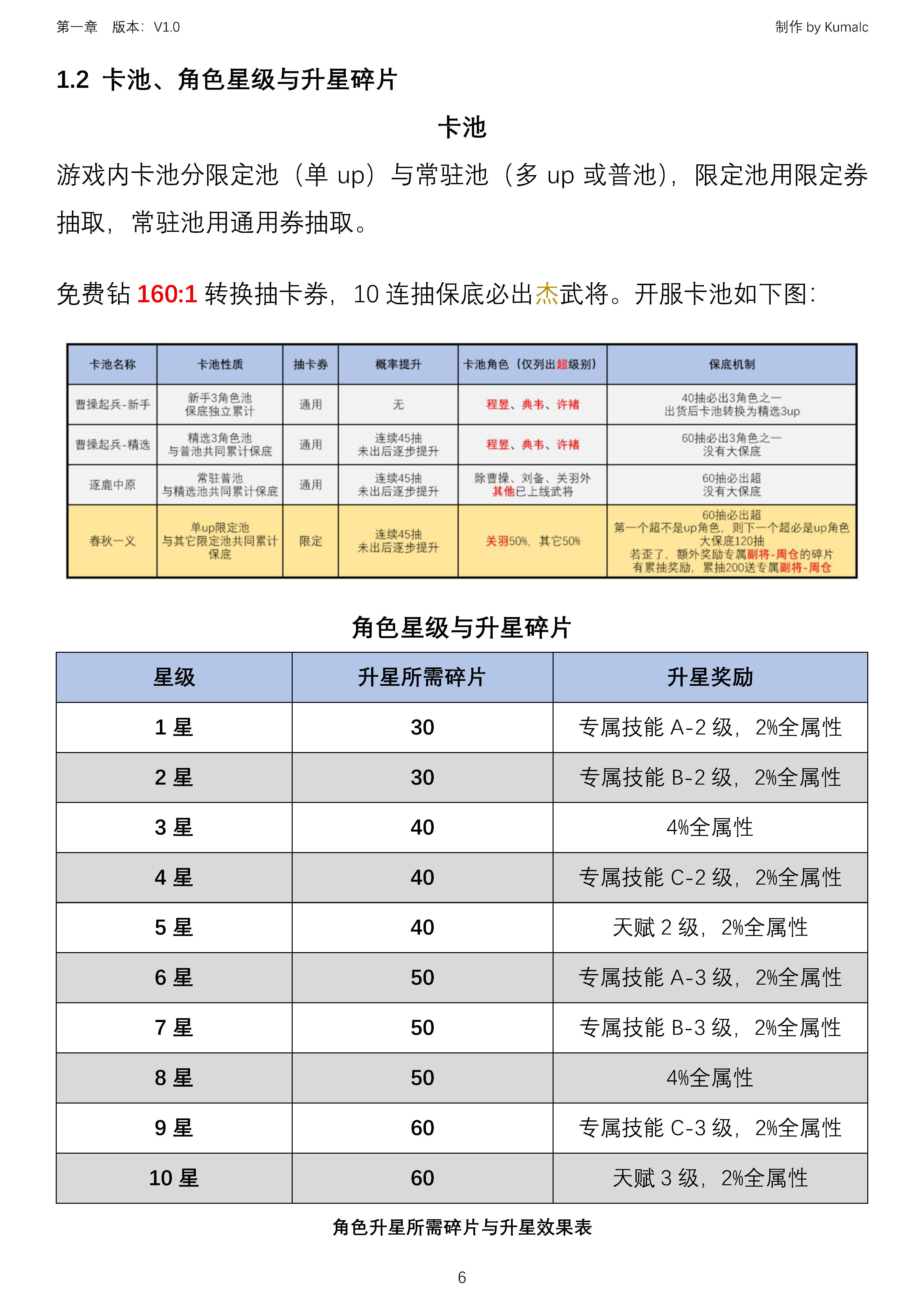 1.2 卡池、角色星级与升星碎片
