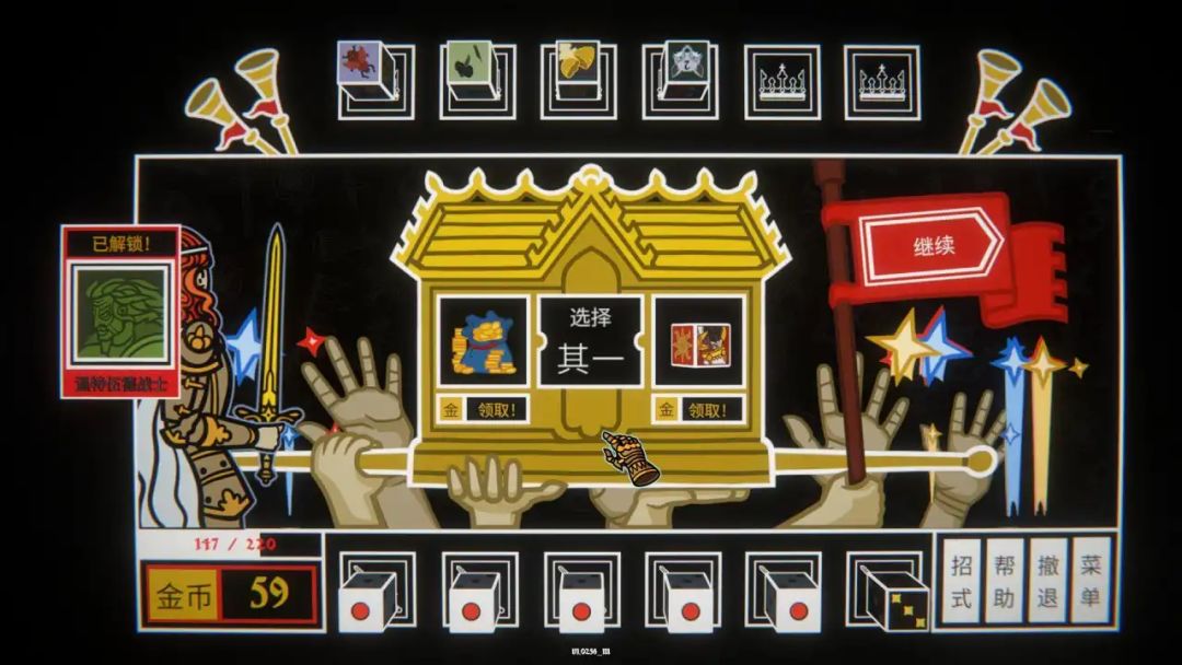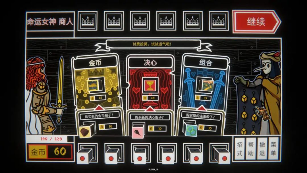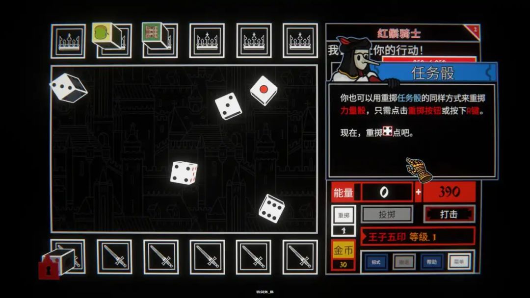 此外游戏还通过任务骰子(一些有着特殊增益/减益效果的骰子)以及类似被动遗物的附庸骰子增加了可玩性,使得玩家的投掷策略更加丰富。