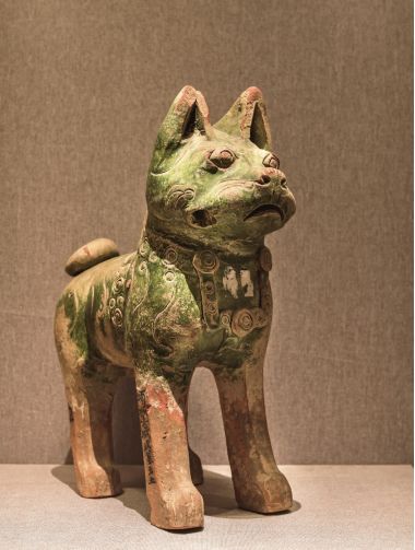 最后就是最近走红网络的河南博物馆里的小狗---绿釉立姿陶狗