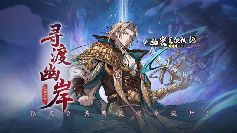 ★幽属相咒师·绝品英灵幽寰夏侯仪召唤概率提升;(详细卡池机制请参考游戏内召唤说明)
