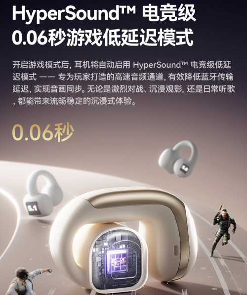 还专为玩家打造的Hyper Sound™电竞级低延迟模式,可实现0.06秒极速响应,相比行业同类产品多在80~100ms左右延迟,西圣Plume大幅降低延迟,让激烈游戏、沉浸观影体验流畅无卡顿。