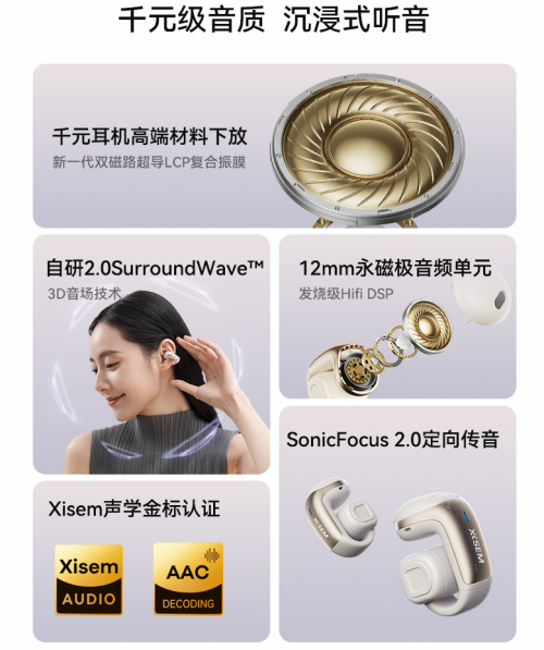 极致Sonic Focus 2.0精准传音,零漏音掌控—顶尖无损声学金标认证!在开放式耳机市场,常见痛点是:音频容易泄漏,用户在公共场合佩戴往往影响周围人,也无法获得沉浸式体验。